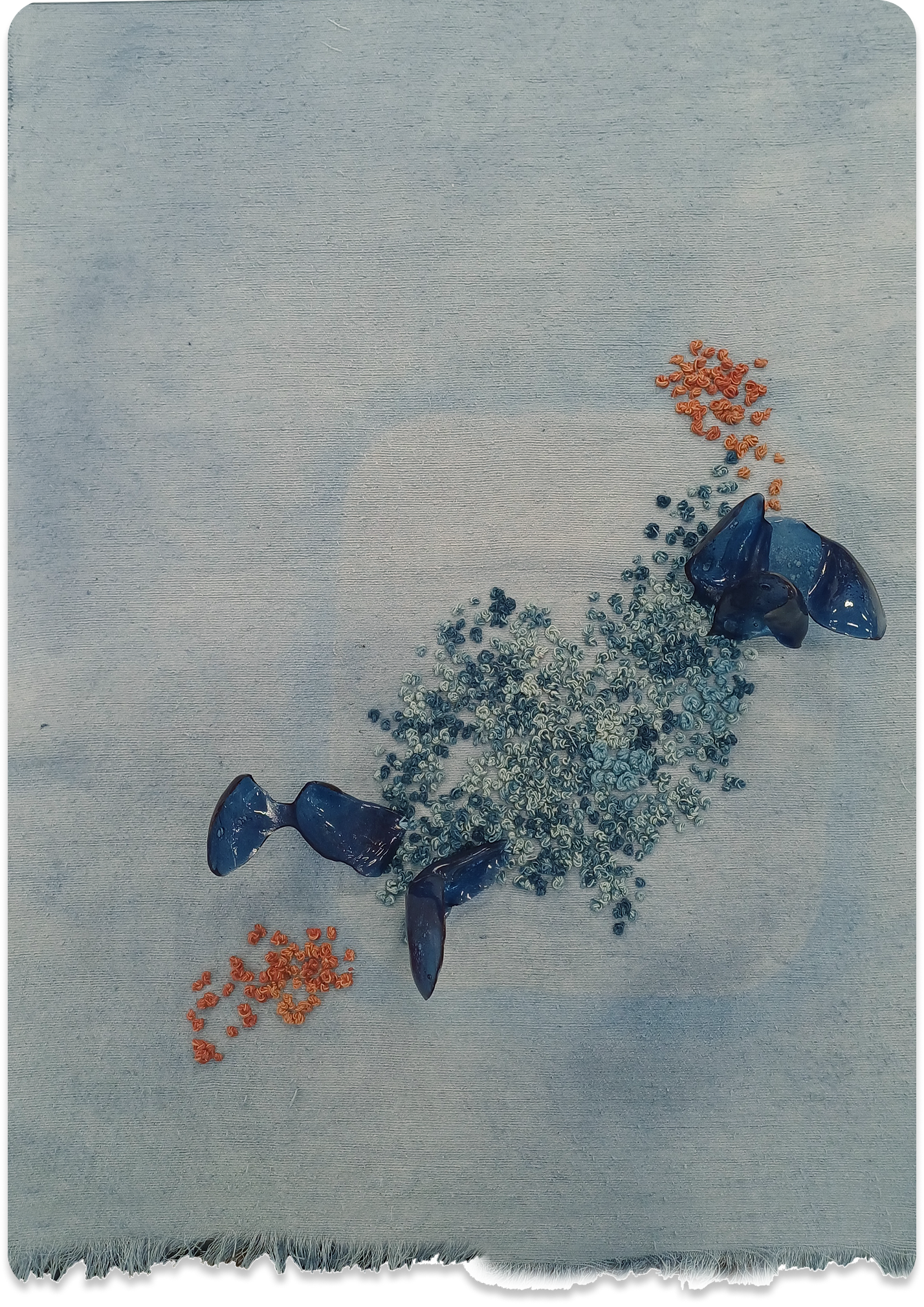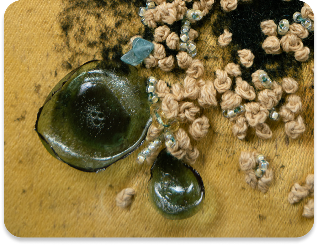 Not disguised, not mimicking — Just placed, and accepted. Thread and glass, no longer separate from earth