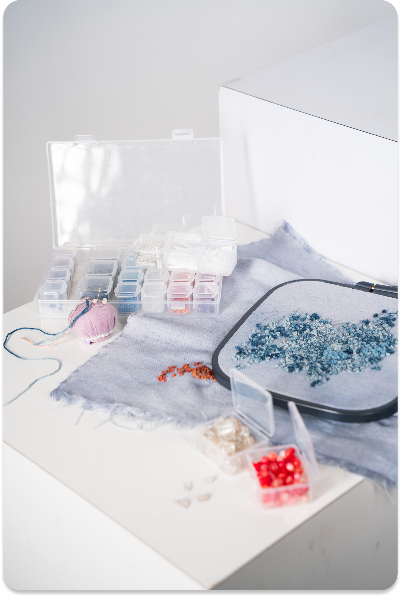 These pieces are made using the same materials, colors, and techniques as the swatches — continuing the collection through wearable fragments.