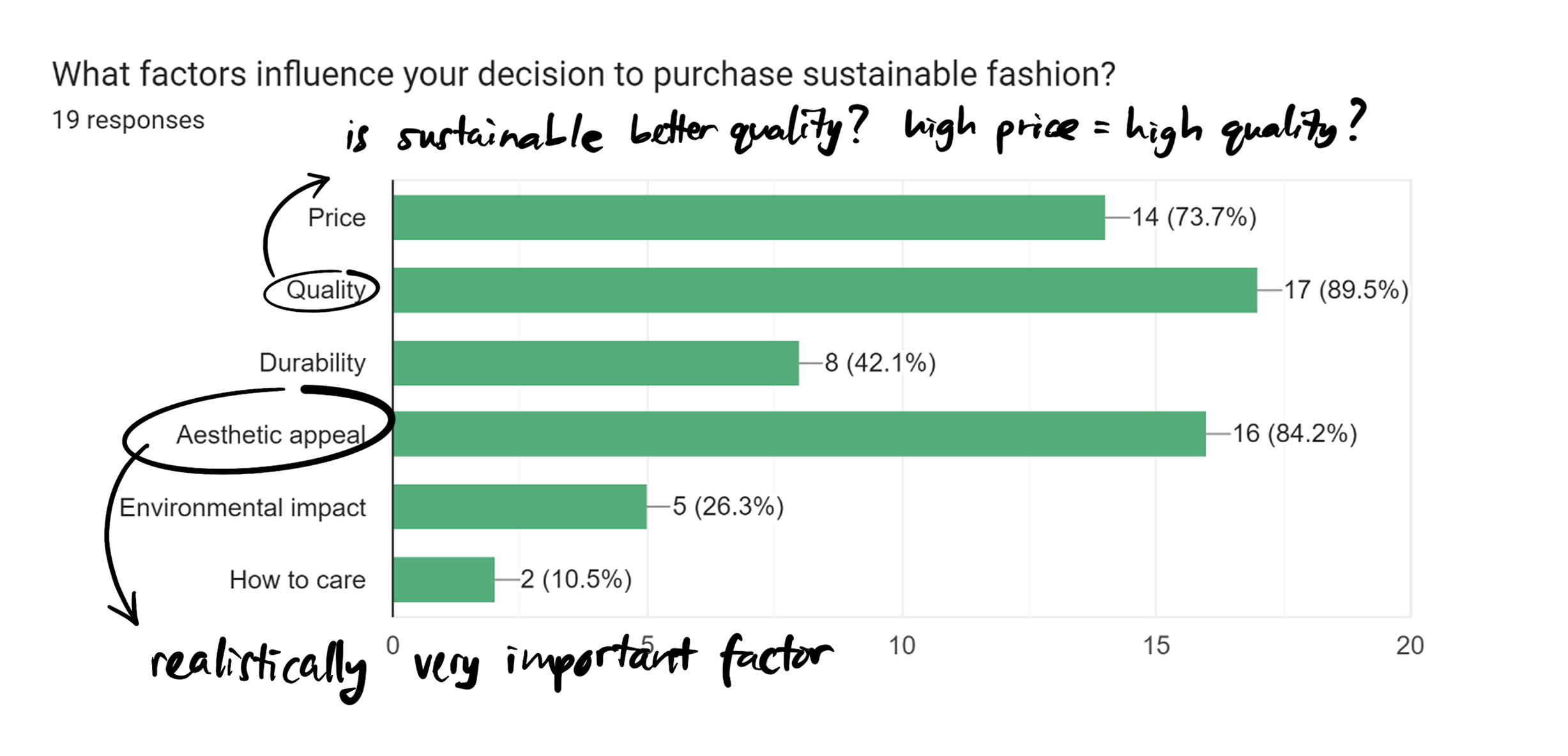 In order to better understand consumer’s awareness on fashion sustainability, I conducted a survey, mainly on aesthetics & material of sustainable fashion